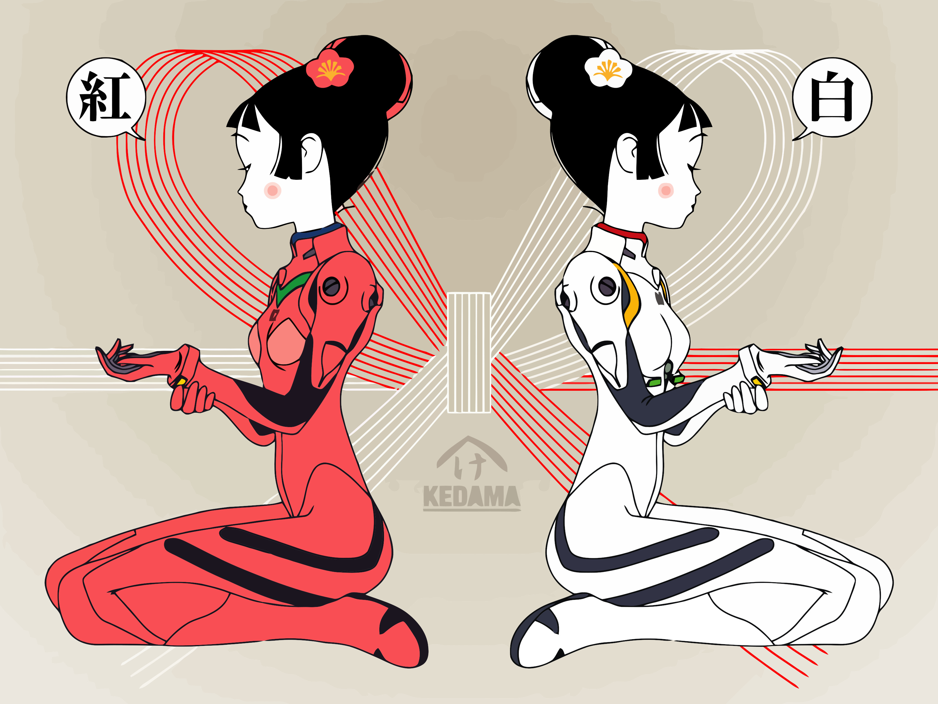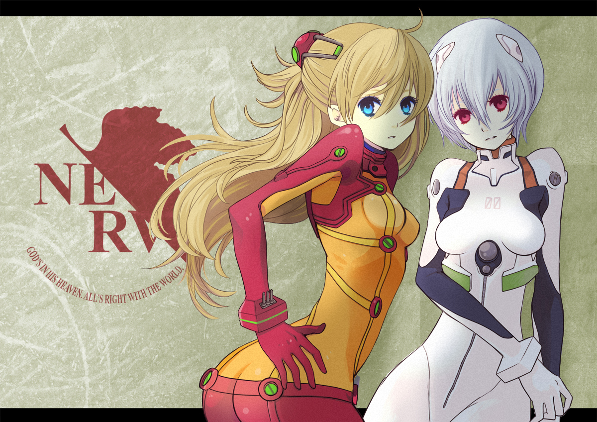 - e-shuushuu.net - 208740 - Neon Genesis Evangelion - Ayanami Rei, Asuka Langley Souryuu - bodysuit, hairpins, short hair.jpg