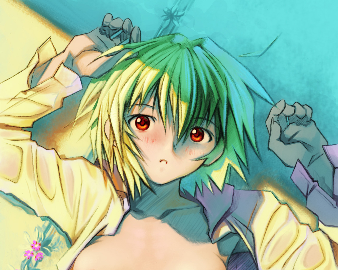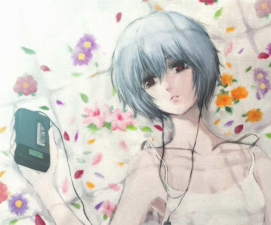 - tbib - 1006464 blue_hair neon_genesis_evangelion red_eyes short_hair flower earphones lying on_bac.jpg