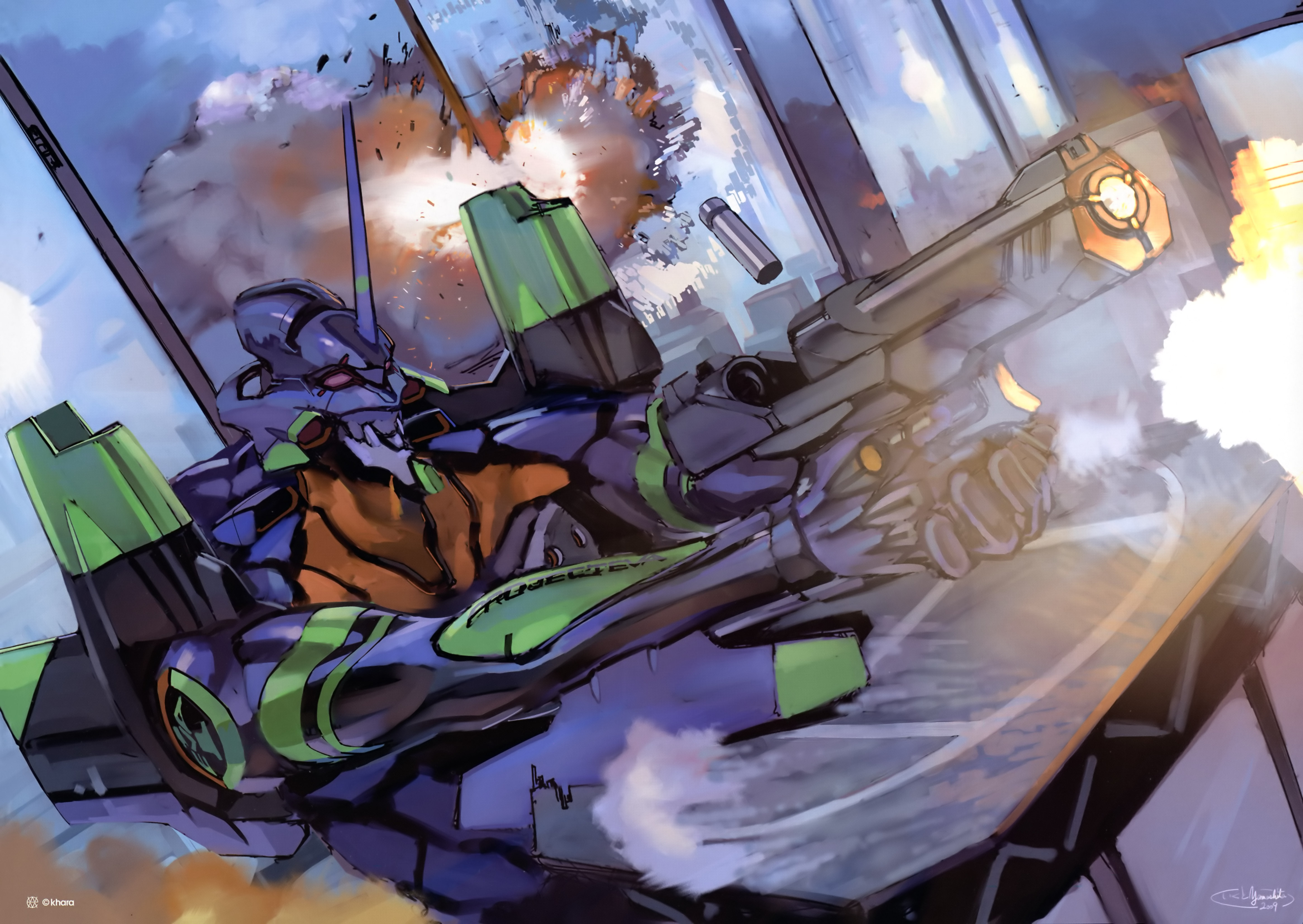 - tbib - 1002055 neon_genesis_evangelion rebuild_of_evangelion solo weapon mecha sky eva_02 no_human.jpg