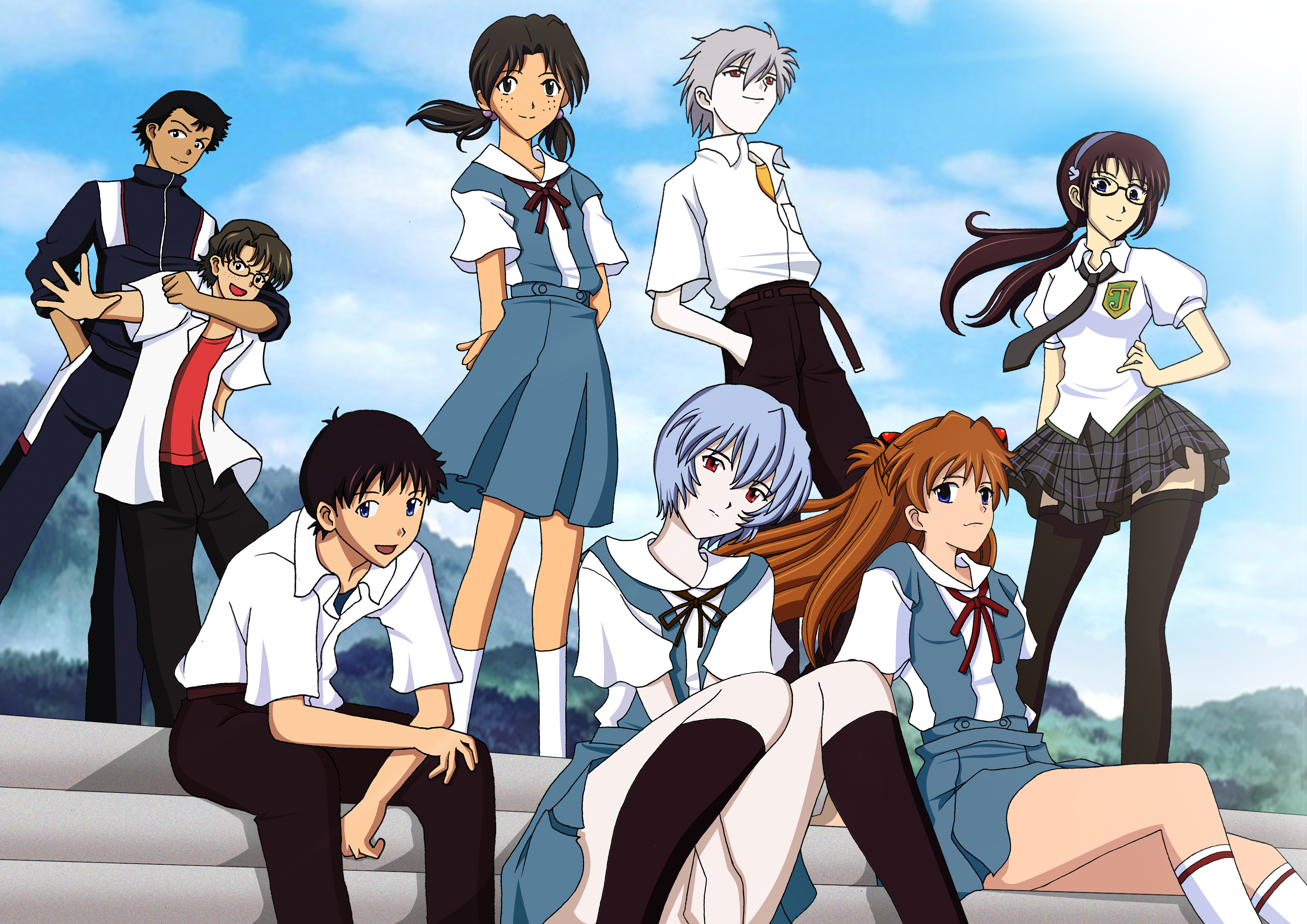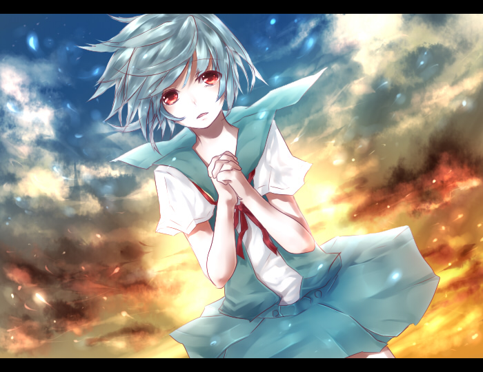 - tbib - 1009896 blue_hair neon_genesis_evangelion red_eyes short_hair school_uniform cloud sky tran.jpg