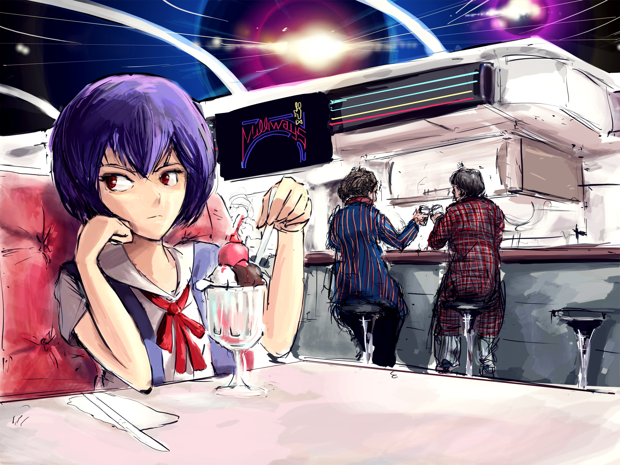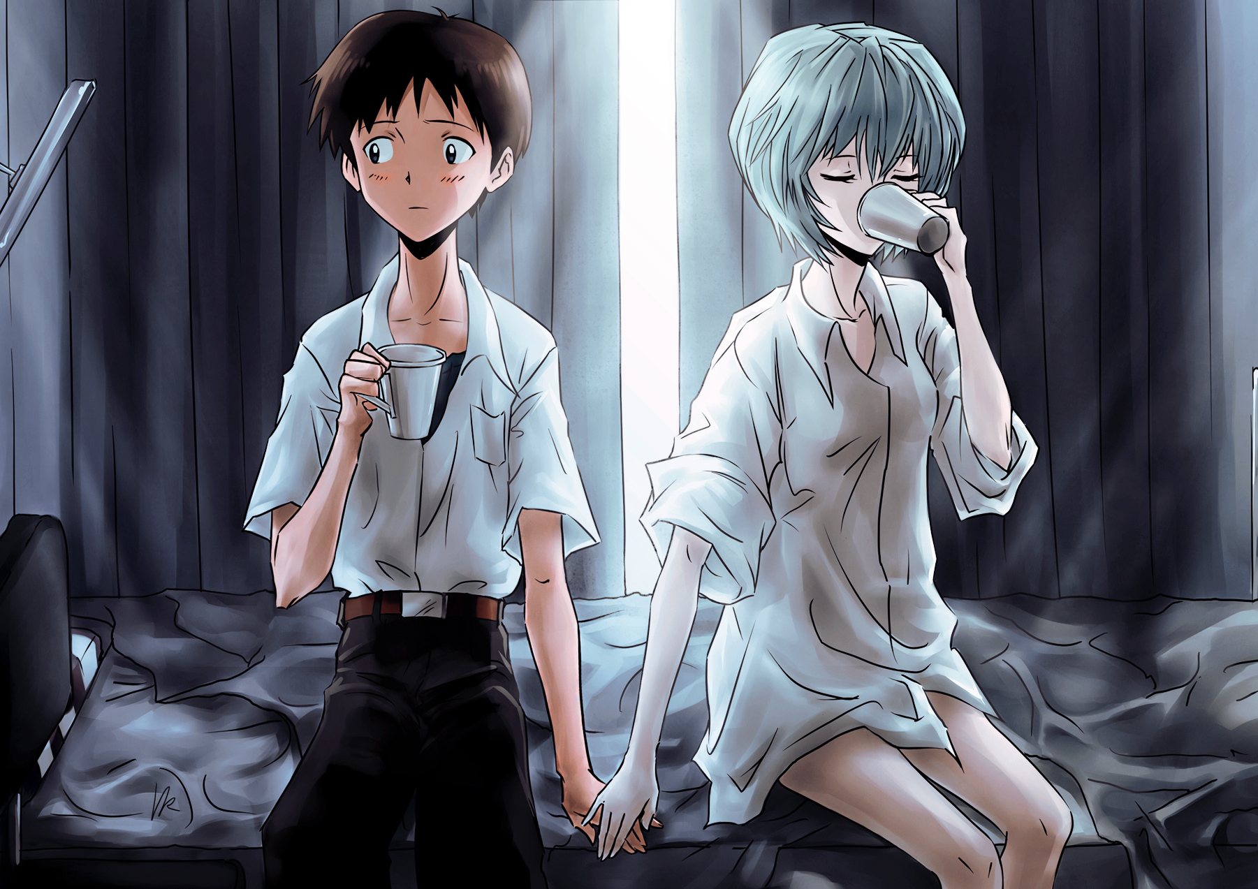 - tbib - 1002561 ayanami_rei blue_hair neon_genesis_evangelion red_eyes short_hair sitting shirt cup.jpg