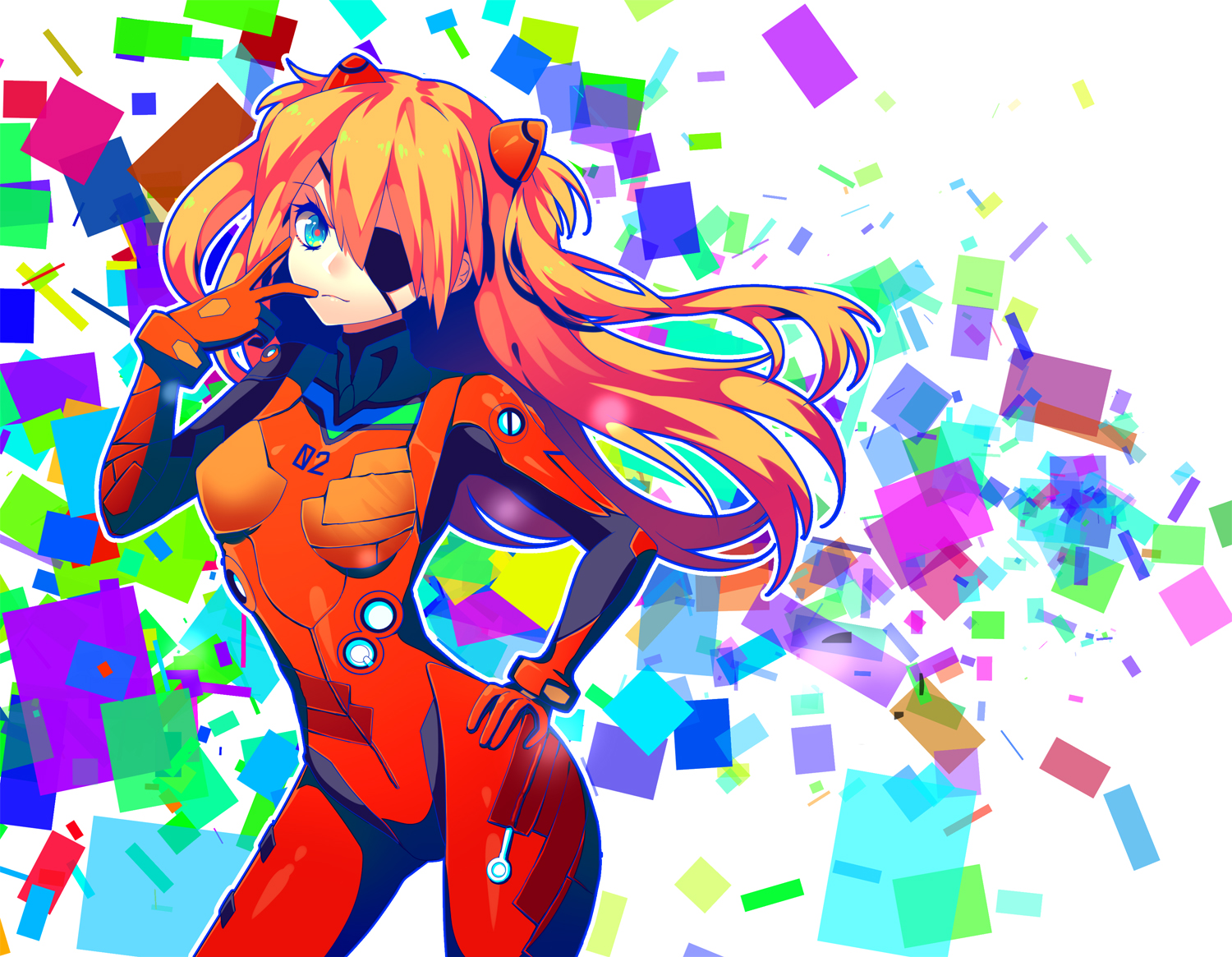 - e-shuushuu.net - 28387 - Neon Genesis Evangelion - Asuka Langley Sohryu - android, bandage, bodysuit, eyepatch, gloves, smile, [PNG].jpg