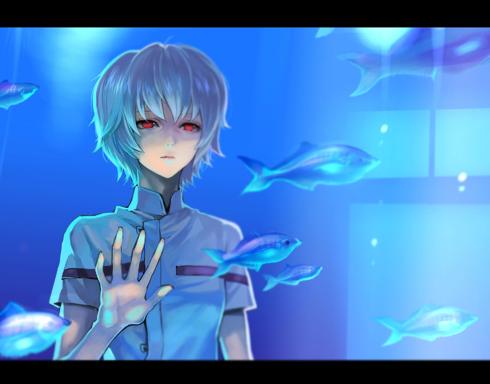 - tbib - 1006366 ayanami_rei blue_hair neon_genesis_evangelion red_eyes short_hair water hands fish.jpg
