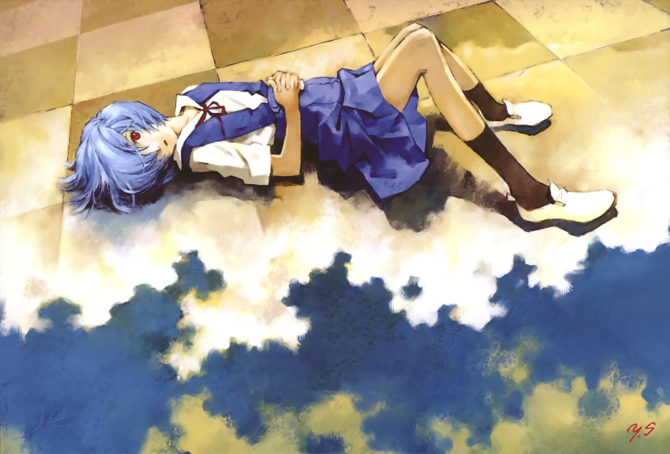 - tbib - 1005731 blue_hair neon_genesis_evangelion red_eyes plugsuit short_hair lying feet legs_up k.jpg
